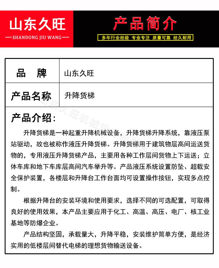 液压升降货梯货物提升机 厂家直销 性能稳定 价格合理
